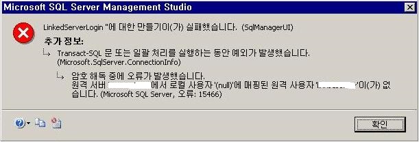 SQL 2008 R2 를 이전시 LinkedServer 에서 위의 이미지와 같은 오류가 발생했습니다.