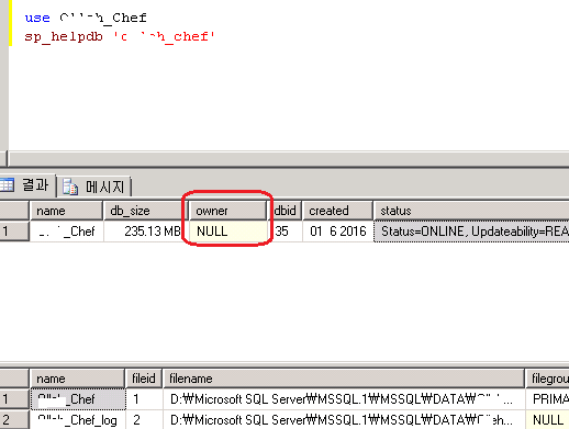 sp_helpdb 'db명'