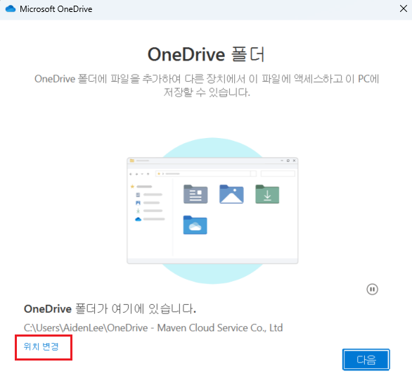 이때 자동 팝업 되지 않을시. 아래 링크에서 OneDrive 확인 하시기 바랍니다.