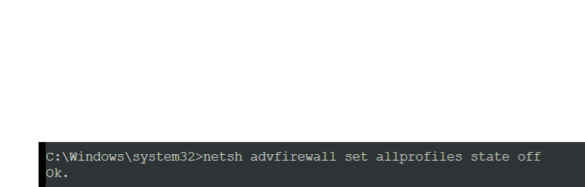 ---- 위에까진 powershell 에서 진행한것이며, 아래는 cmd 에서 방화벽 중지 시키는 겁니다. ---