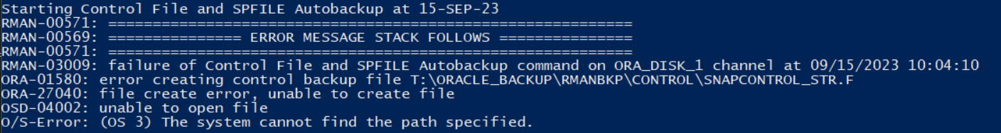 Finished Control File and SPFILE Autobackup at 15-SEP-23