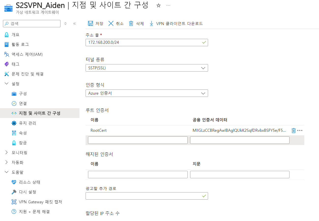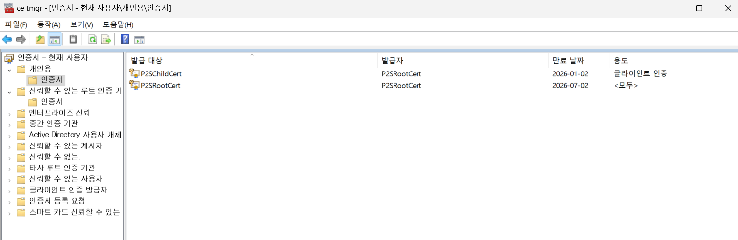 https://learn.microsoft.com/ko-kr/azure/vpn-gateway/vpn-gateway-certificates-point-to-site#cer