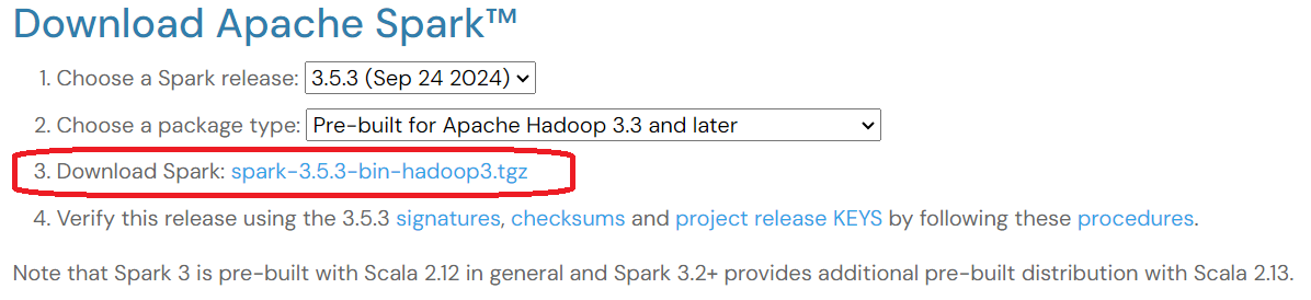 Download Apache Spark™ Choose a Spark release: Choose a package type: Download Spark: Verify this release using the and project release KEYS by following these procedures. Note that Spark 3 is pre-built with Scala 2.12 in general and Spark 3.2+ provides