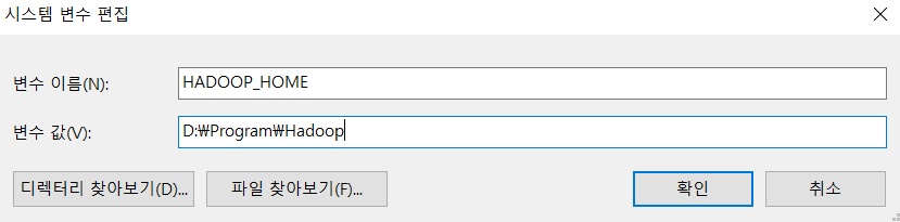 위 그림에서 보는듯이 Winutils.exe 파일만 다운로드후 D:\Program\Hadoop\ 폴더에 위치했다.