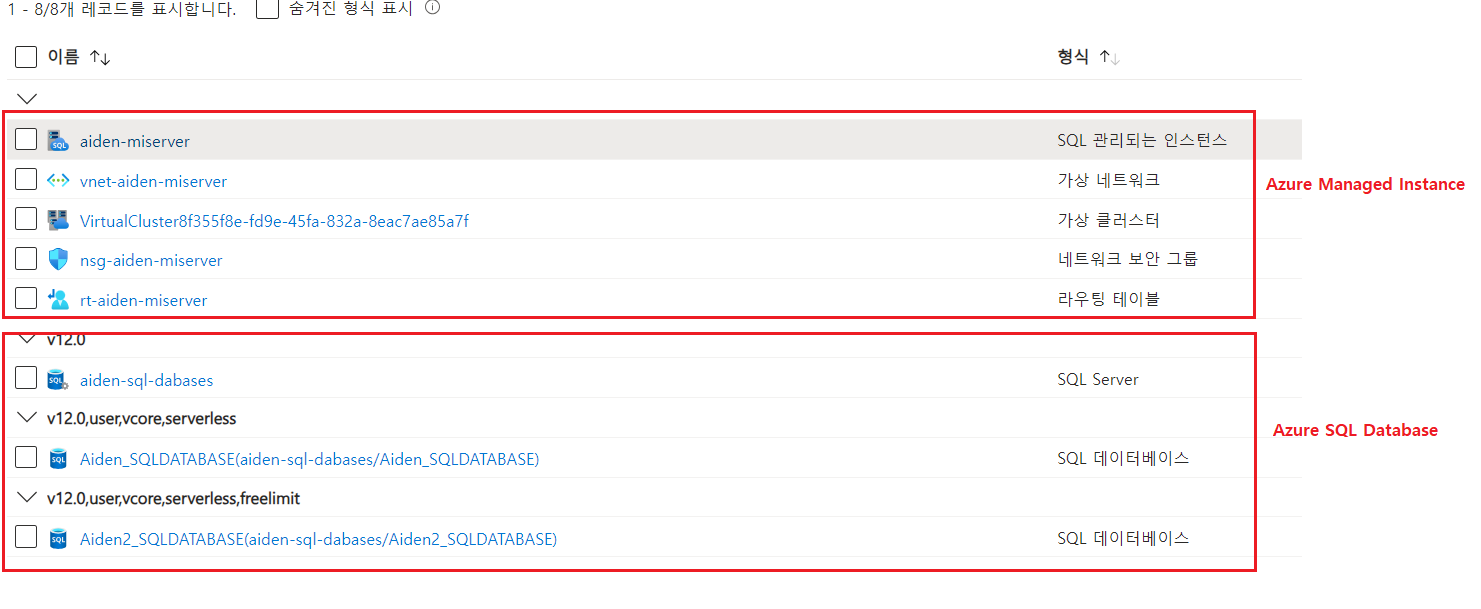 - Azure MI 에서는 추가로 설치되는게. 가상네트워크,클러스터,NSG,라우팅테이블등이 설치된다.
