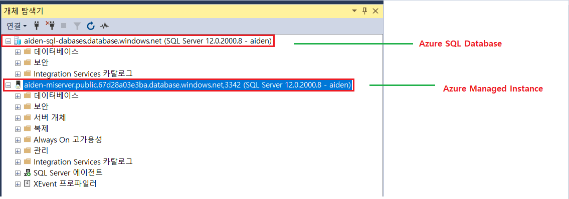 # Azure Managed Instance 에서는 온프라미스에서 설치된 서버와 동일하게다 나온다.