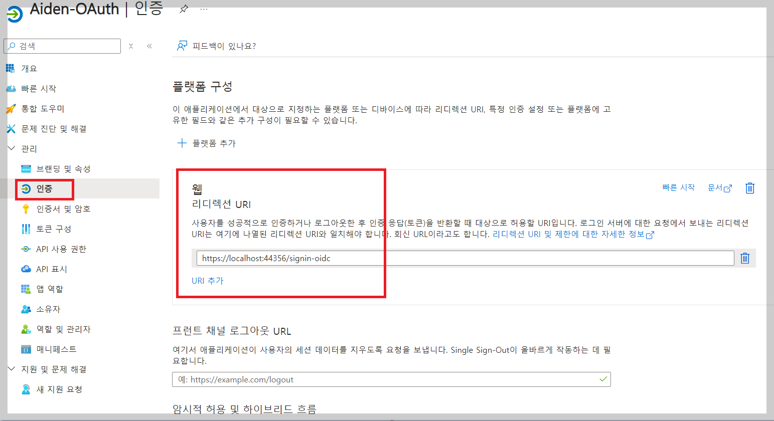 개발 환경 구성: 570. C# - Azure AD 인증을 지원하는 ASP.NET Core/5+ 웹 애플리케이션 예제 구성