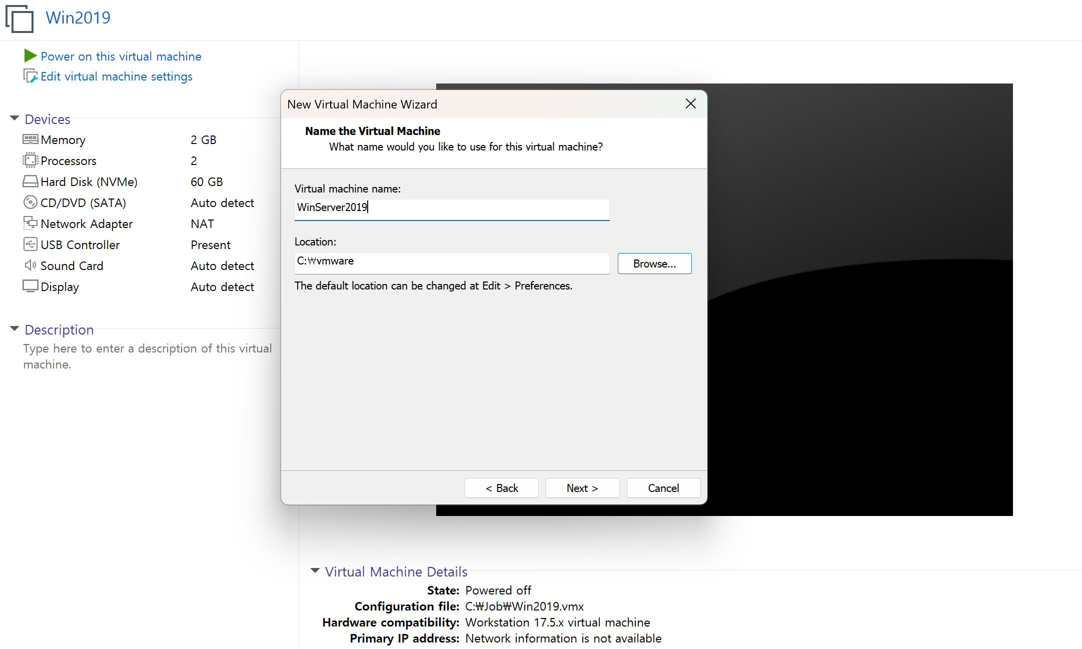 -> 여기 핵심은 Virtual Machine Name 의 이름을 다 붙여썼다. 띄어뜨면 변환할때 못찾는 상태가 나서 ㅠ
