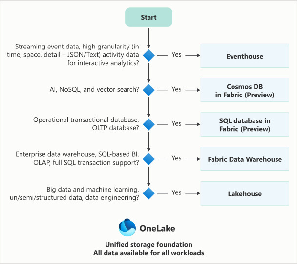 패브릭 의사 결정 가이드 - 데이터 저장소 선택 - Microsoft Fabric | Microsoft Learn